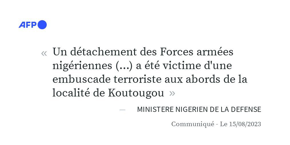 Niamey, 16 aout 2023 (Lomé Actu) – Au moins 17 soldats nigériens ont été tués et 20 blessés dans le sud-ouest du Niger dans une attaque de djihadistes hier près de la frontière entre le Niger et le Mali, a annoncé le ministère de la Défense à Niamey
