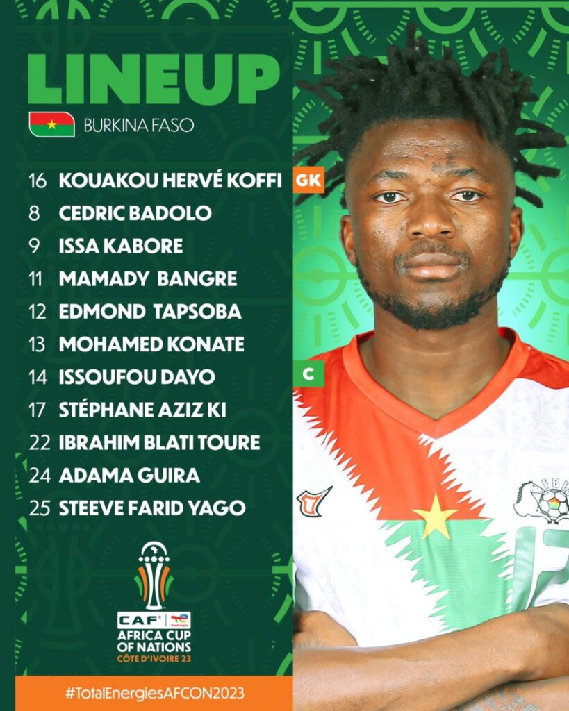 Demi-finaliste de l’édition précédente, le Burkina Faso aborde la CAN 2024 avec un esprit déterminé. La composition officielle pour le choc contre la Mauritanie dévoile une formation puissante :