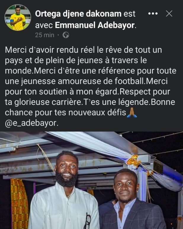 Djene Dakonam envoie un message de respect et d’admiration à Emmanuel Adebayor