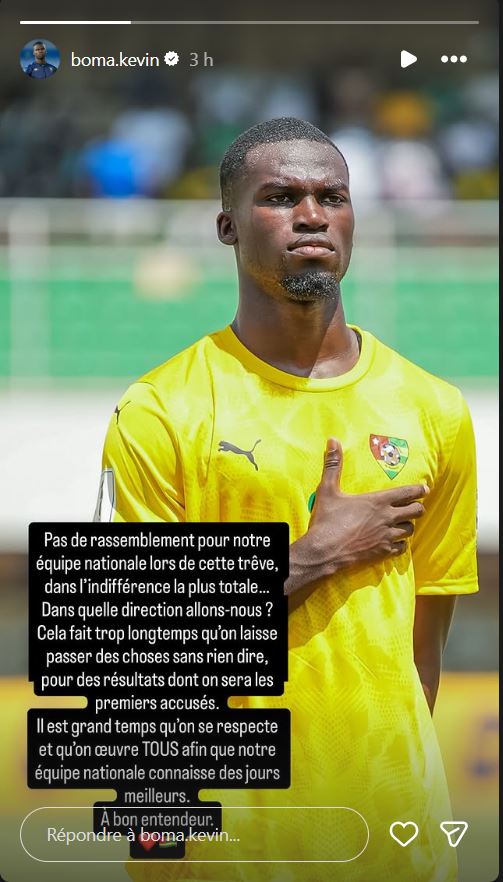 Boma n’a pas mâché ses mots. Dans un message direct, il a exprimé sa consternation face à l’inaction de l’équipe nationale. « Pas de rassemblement pour notre équipe nationale lors de cette trêve, dans l’indifférence la plus totale… Dans quelle direction allons-nous ? » a-t-il écrit. Son message dresse un constat alarmant d’une organisation à la dérive, révélant un manque de planification et d’engagement au plus haut niveau.