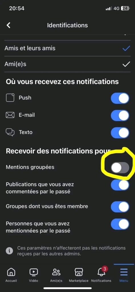 - Désactiver les notifications groupées : Dans les réglages des notifications de balisage, vous trouverez une option appelée « Notifications groupées ». Il vous suffit de désactiver cette option pour désactiver les notifications pour les tags de groupe tels que @tout le monde ou @followers.