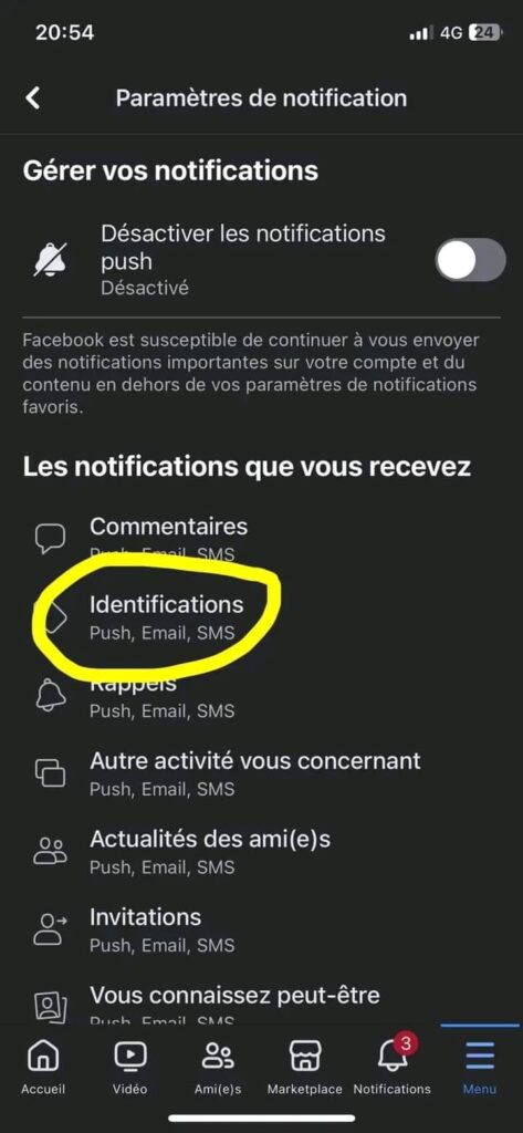 - Notifications de marquage : Recherchez la section « Marquage » dans les réglages de notification. Vous y trouverez des options relatives aux notifications de marquage.