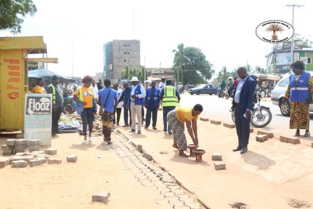 Au premier point à l’ordre du jour, le Conseil municipal a lancé, tôt dans la matinée, une sensibilisation à l’endroit des occupants des espaces publics non destinés aux activités commerciales. Ainsi, les élus locaux, conduits par les 2ème et 3ème Adjoints au Maire, respectivement Messieurs AGBEYIBOR Komlanvi et KOVE Kossi et appuyés par le Secrétaire général de la commune du Golfe 7, Monsieur DEGBEY Kodzo, le Responsable des services techniques de la mairie, Monsieur AVOTOR Yao et des agents des services techniques, ont parcouru le long de la voie en partant du carrefour Dunenyo jusqu’au carrefour Sagbado pour rappeler à l’ordre ceux qui débordent les trottoirs de la voie de marchandises.