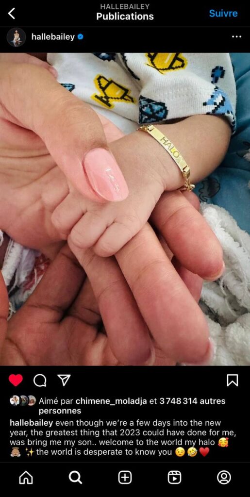 La jeune actrice américaine Halle Bailey, âgée de 23 ans, a récemment confirmé sur Instagram, l’arrivée de son premier enfant. Il s’agit d’un petit garçon prénommé Halo. Bien que sa grossesse n’ait jamais été officiellement annoncée, des rumeurs avaient commencé à circuler en octobre 2023 en raison des vêtements amples qu’elle portait.