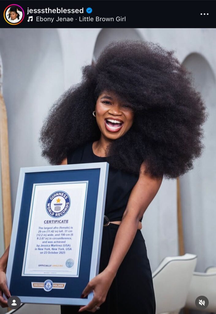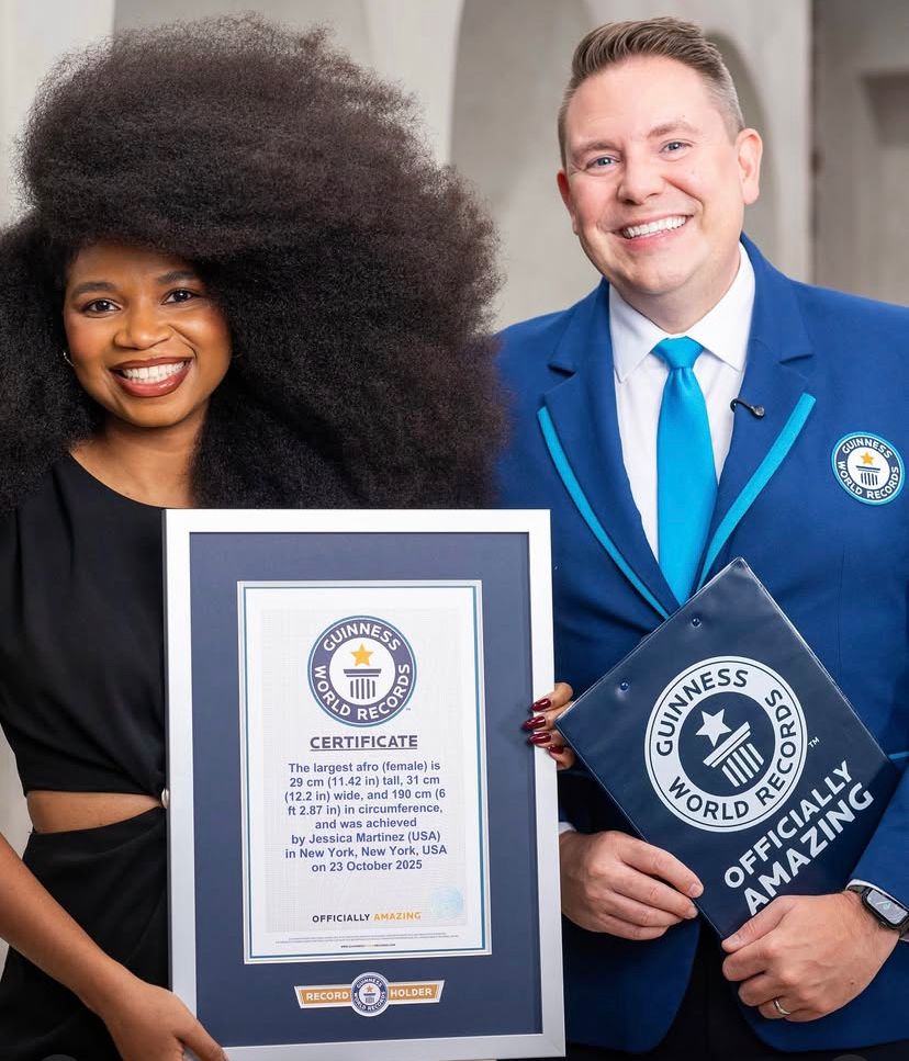 L’avocate new-yorkaise et militante pour la justice pénale Jess Martinez vient d’être officiellement reconnue par le Guinness World Records comme la femme vivante possédant la plus grande coiffure afro au monde.