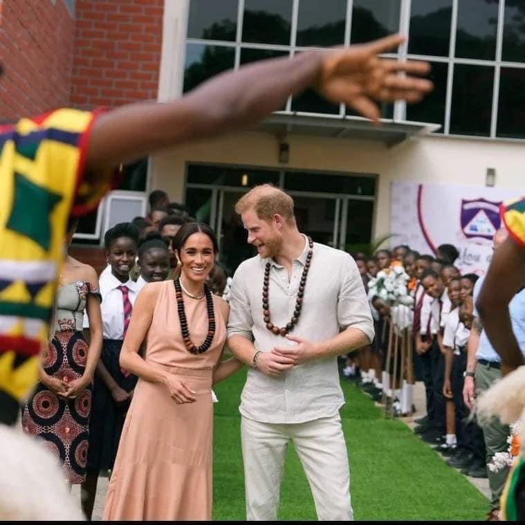 Le prince Harry et Meghan rendent visite aux enfants de la Lights Academy d’Abuja, au Nigeria ce 10 mai 2024.