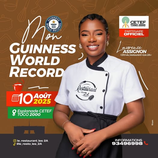La cheffe togolaise Laurence Assignon, fondatrice du restaurant Les 2A, vous donne rendez-vous ce dimanche 10 août à 13h sur l’esplanade du CETEF TOGO 2000. Son défi ? Réaliser une performance culinaire qui fera rayonner la gastronomie togolaise à l’international.