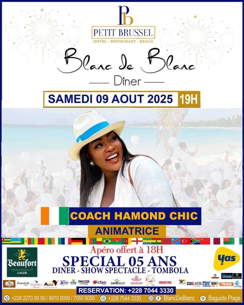 La 5e édition du Dîner Blanc de Blanc s’annonce comme un rendez-vous incontournable pour les amoureux du raffinement et des soirées inoubliables. Cette année, il se tiendra à l’Hôtel Petit Brussel dès 19h, avec la présence de nombreuses personnalités venues du Togo, de la RDC, de la Côte d’Ivoire, d’Europe et d’Amérique…
