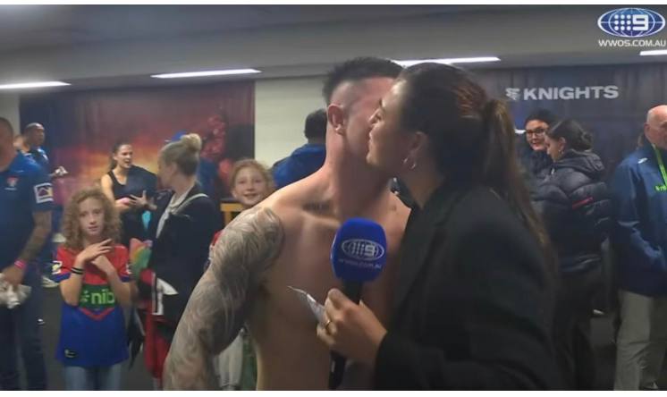 Le joueur de rugby de Newcastle, Bradman Best, s’est retrouvé dans une situation gênante en direct à la télévision alors qu’il tentait d’embrasser Millie Boyle après la victoire de son équipe vendredi soir.